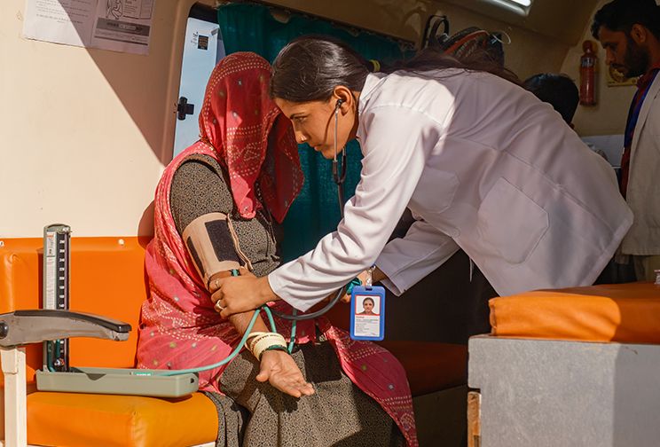 Our implementation partner, Bal Raksha Bharat, operates a Mobile Health Unit (MHU) to deliver essential primary healthcare services to remote and underserved communities in Bari Seer Gram Panchayat, Phalodi.
